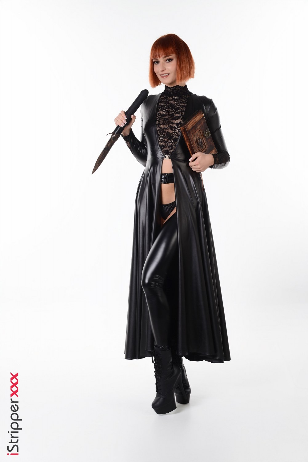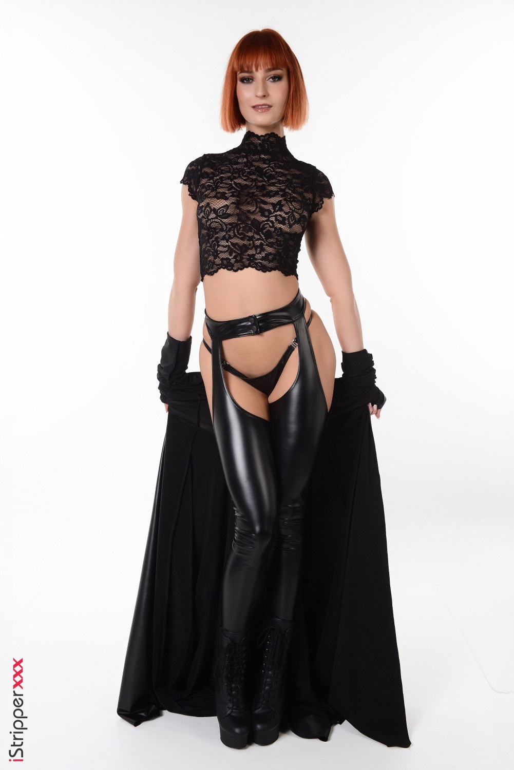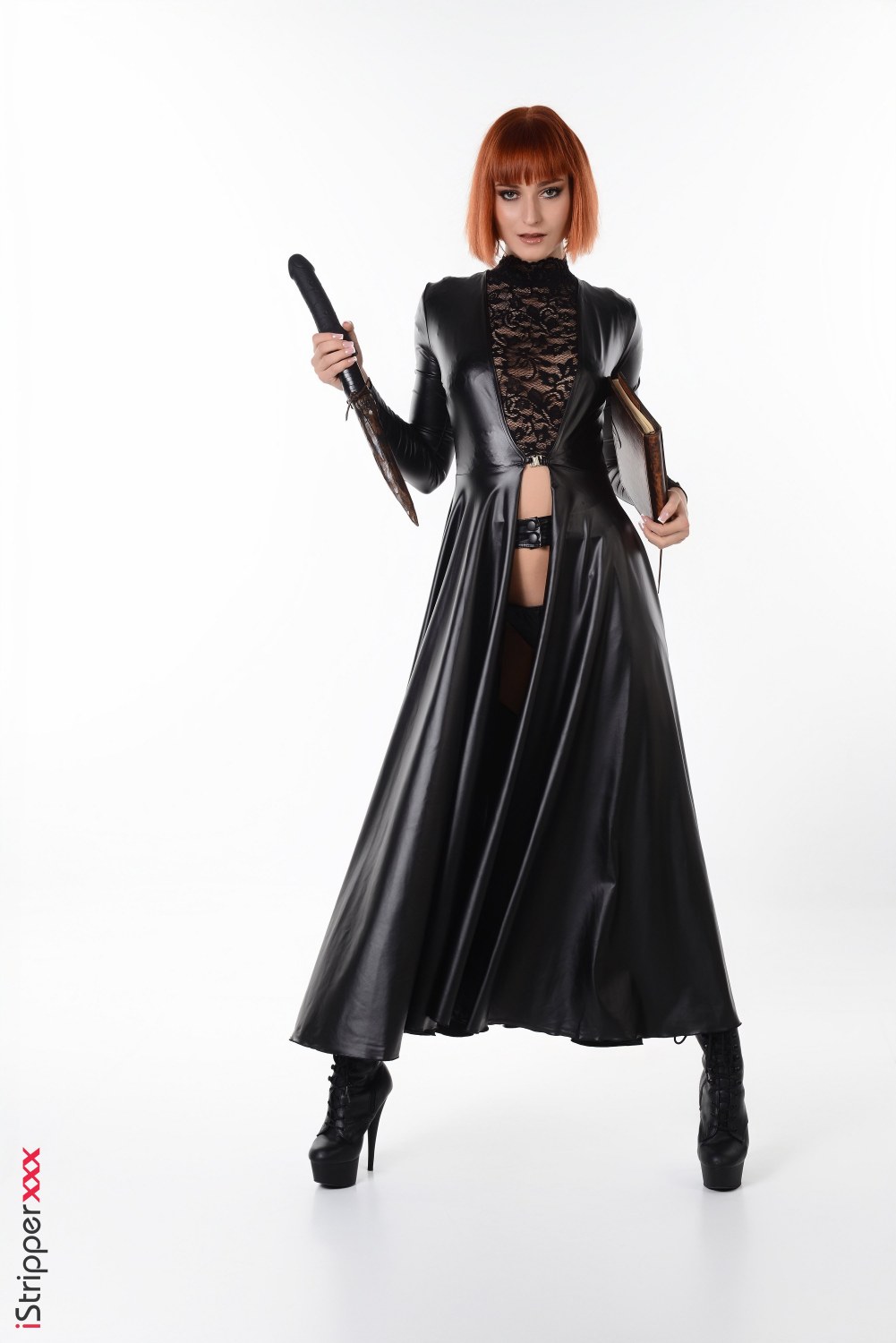 Hot Redhead Girl Dolly Dyson In Black Leather Outfit Has Some Fun With Her Big Toy