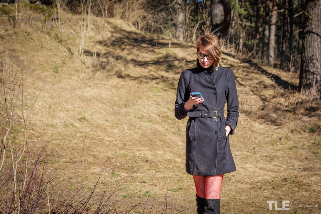 Redhead Girl Lola T In Red Fishnets And Black Boots Gets Horny In The Forest