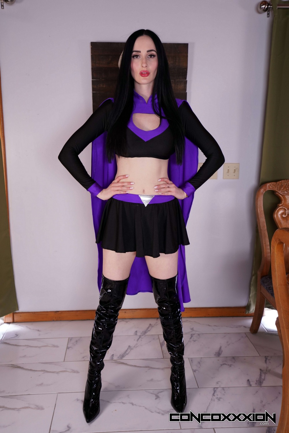 Beautiful Dark Haired Cosplay Babe Ultra Violet In Black Thighhigh Boots Gets Fucked On Couch